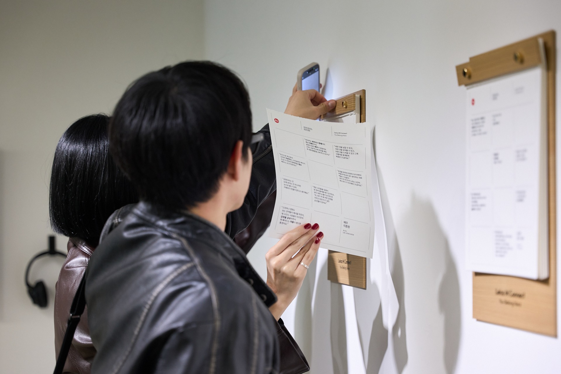 한쪽 벽면에는 이들의 실제 인용문이 붙어 있었고, 방문객은 마음에 드는 문장을 떼어 가져갈 수 있었습니다. 또 다른 벽면에는 오랜 기간 라이카를 사용해온 고객들의 사진과 인터뷰가 전시되어, 라이카 세계에서의 공감과 경험을 공유했습니다.